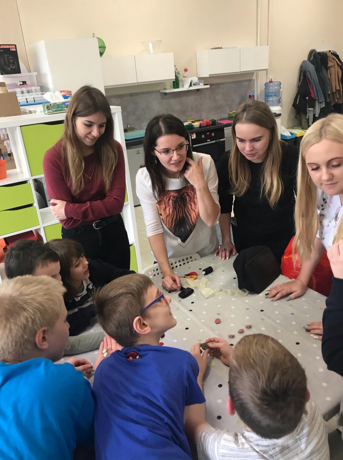 Dnia 27.11.2019r. studentki III roku Pracy socjalnej w składzie: Natalia Spica, Kamila Wasiniewska, Beata Staśkiewicz, Agnieszka Truszczyńska, Michalina Żebrowska przeprowadziły zajęcia pt. „Mój Przyjaciel Miś” pod kierunkiem mgr Eweliny Romianowskiej, w ramach prowadzonych przez Panią Magister ćwiczeń - Projekt socjalny. Projekt skierowany był do uczniów, którzy uczęszczają na zajęcia i warsztaty do Fundacji Ważna Edukacja – Świetlica Ściśle Fajne, mieszczącej się na ul. Kosynierów Kościuszkowskich 13/5 w Toruniu.