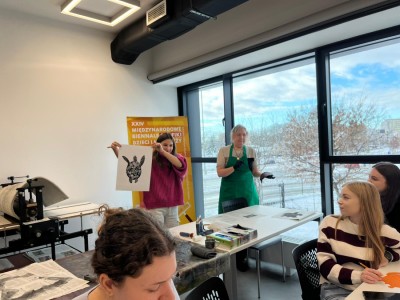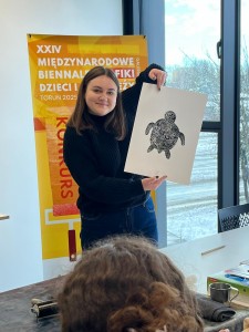 Studentki V roku pedagogiki przedszkolnej i wczesnoszkolnej uczestniczyły w warsztatach grafiki w Młynie Kultury. W ramach współpracy z Galerią Twórczości Dziecka w Toruniu, zostaliśmy włączeni do projektu „Bienale grafiki dla dzieci”. Doświadczyliśmy całego procesu graficznego i poznaliśmy sposoby pracy z uczniami. Zajęcia zostały zorganizowane przez dr Elżbietę Wieczór w ramach przedmiotu twórczość plastyczna i literacka dzieci.