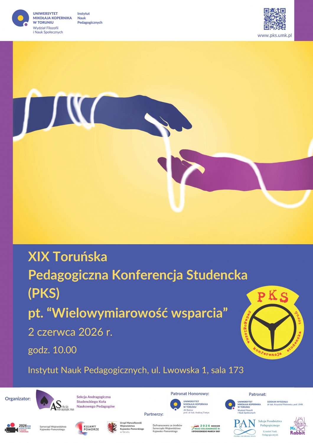 Zapraszamy studentów oraz doktorantów do nadsyłania abstraktów na XIX Toruńską Pedagogiczną Konferencję Studencką (PKS), która odbędzie się 2 czerwca 2026 roku w Instytucie Nauk Pedagogicznych WFiNS UMK w Toruniu.